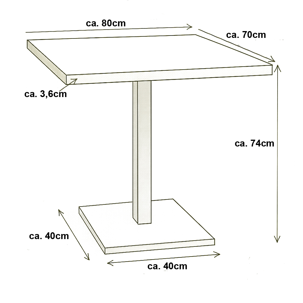 1+2 Set ristorante 80x70x3,6cm Grace Hotel Tavolo Bistro Gambe Sedie Mobili Gastronomia