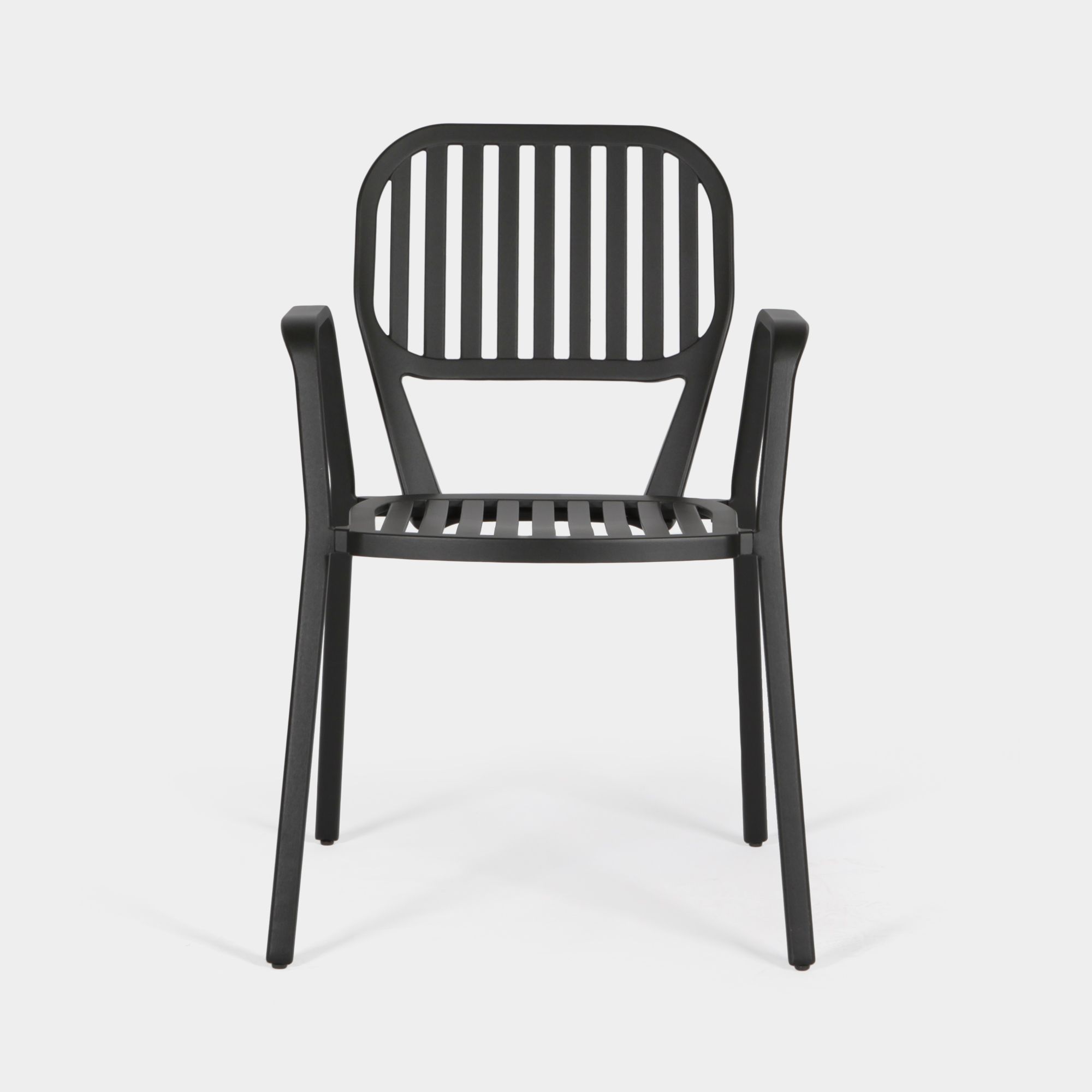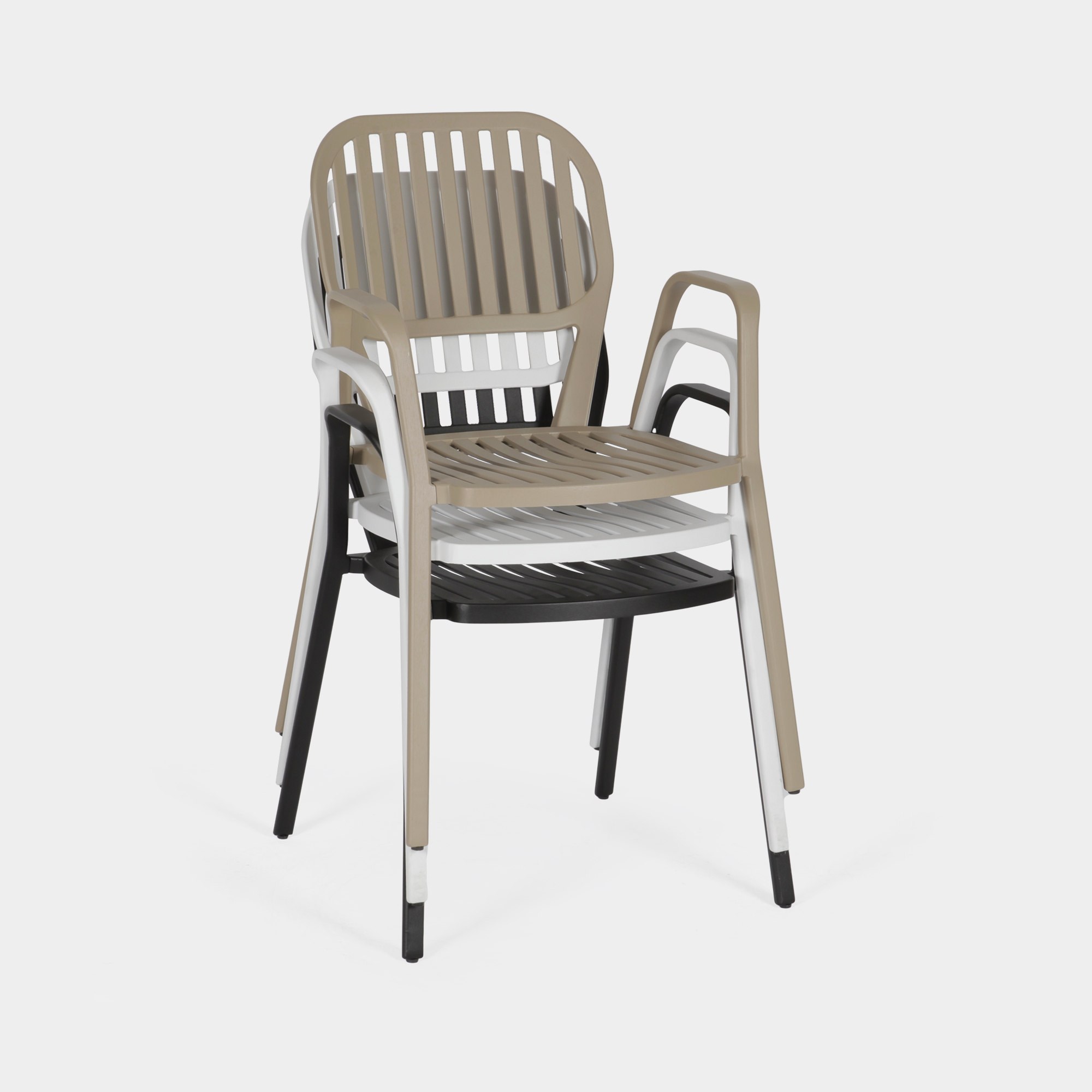 Grazie al suo design impilabile, è particolarmente pratica per l'uso all'aperto, sulle terrazze, nei caffè, negli hotel o nei locali di ristorazione.