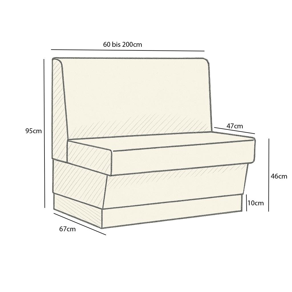 La nostra panca per catering ha una larghezza compresa tra 60 cm e 200 cm e offre spazio per 1 o 6 persone. È possibile personalizzare la panca per adattarla al proprio spazio e combinarla con le nostre panche da 60 cm e le panche ad angolo. Le nostre panche sono piuttosto compatte e sono ideali per gli ambienti più piccoli. Con la nostra panca da ristorazione, potrete creare un'atmosfera accogliente e invitante per i vostri ospiti.